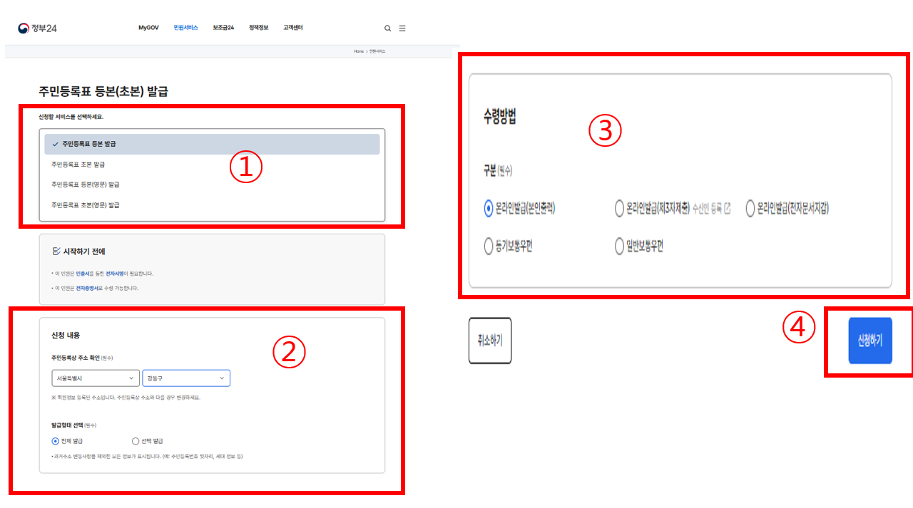 이렇게 되면 주민등록 등본 신청하기 위해 공공기관으로 직접 찾아가지 않고 신청할수있다.